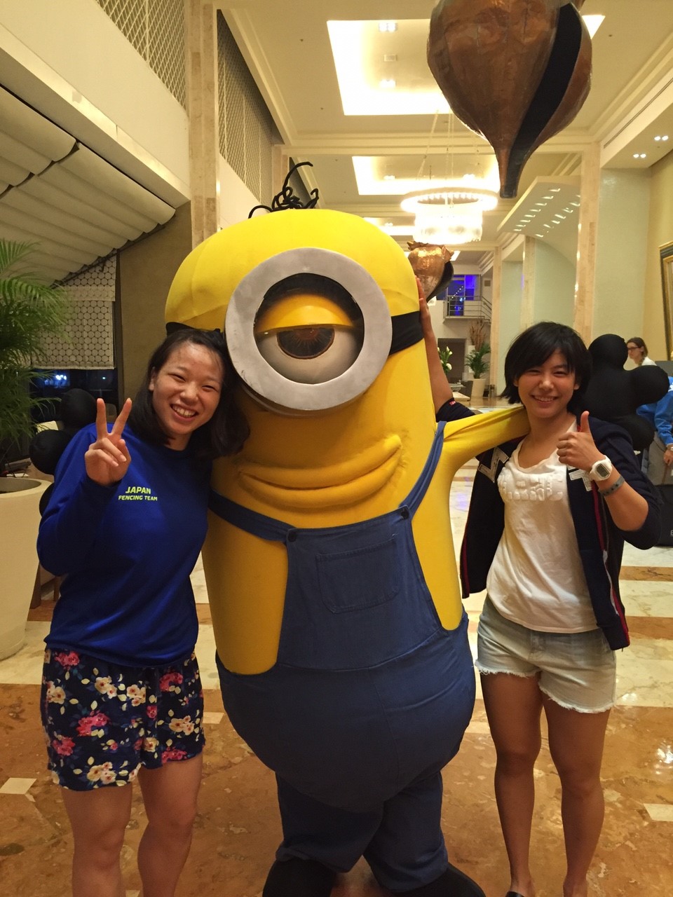 ホテルのロビーにいたミニオンとかりんと、、、爆笑してます笑
